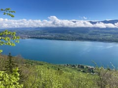 Belle rando en sous-bois avec un superbe panorama sur le lac du Bourget sur le final.