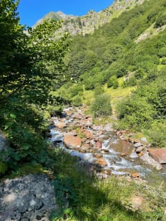 Parking au niveau de la centrale électrique. L'essentiel de la marche se fait sous les arbres. A mi-chemin, passage d'un pont au dessus du torrent. Puis la pente est plus raide. Enfin, on sort de la partie boisée à l'entrée de la vallée, la où se trouve la cabane du berger. A partir de là, chacun peut aller où il veut. Pour les plus courageux, il faut compter deux bonnes heures pour rejoindre le port de la Pez, qui fait la frontière avec l'Espagne.