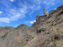 De jolis points de vue sur le château et la vallée. Il y a une table d'orientation 300m au dessus. Attention: la montée de droite est étroite et potentiellement glissante. Été 2024: le château est en travaux. On peut seulement faire le tour.