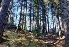 Bois agréable avec quelques passages humides. Chemin facile. Roche en forme de grenouille, croix bossottes. Tout public et peu fréquenté. Parking facile pour se garer.
