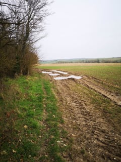 Première partie sur les hauteurs dans les champs. Pas mal de boue. Deuxième partie plus intéressante sur un GR et en sous-bois.