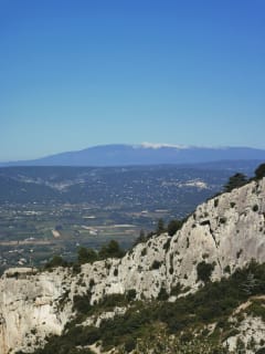 A la descente, on aura de superbes vues sur la vallée du Calavon, les Monts-de-Vaucluse et le Ventoux plus loin.