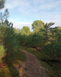 Il faut suivre le balisage VTT, très bien fait pour s'enfoncer dans la forêt et découvrir ses chemins merveilleux... Beaucoup de sable a certains endroits, donc difficile de monter le côtes, des petits passages très intéressants, très fatiguant et pas très roulant à cause du sable, surtout par temps bien sec... Possibilité de rallonger jusqu'à Noirmoutier...