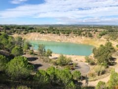 Vue sur lac de saint farriol par le Sentier des gorges rouges. Départ LPO Loupian. Suivre le sentier et les balises jaunes. Beau point de vue. Facile.