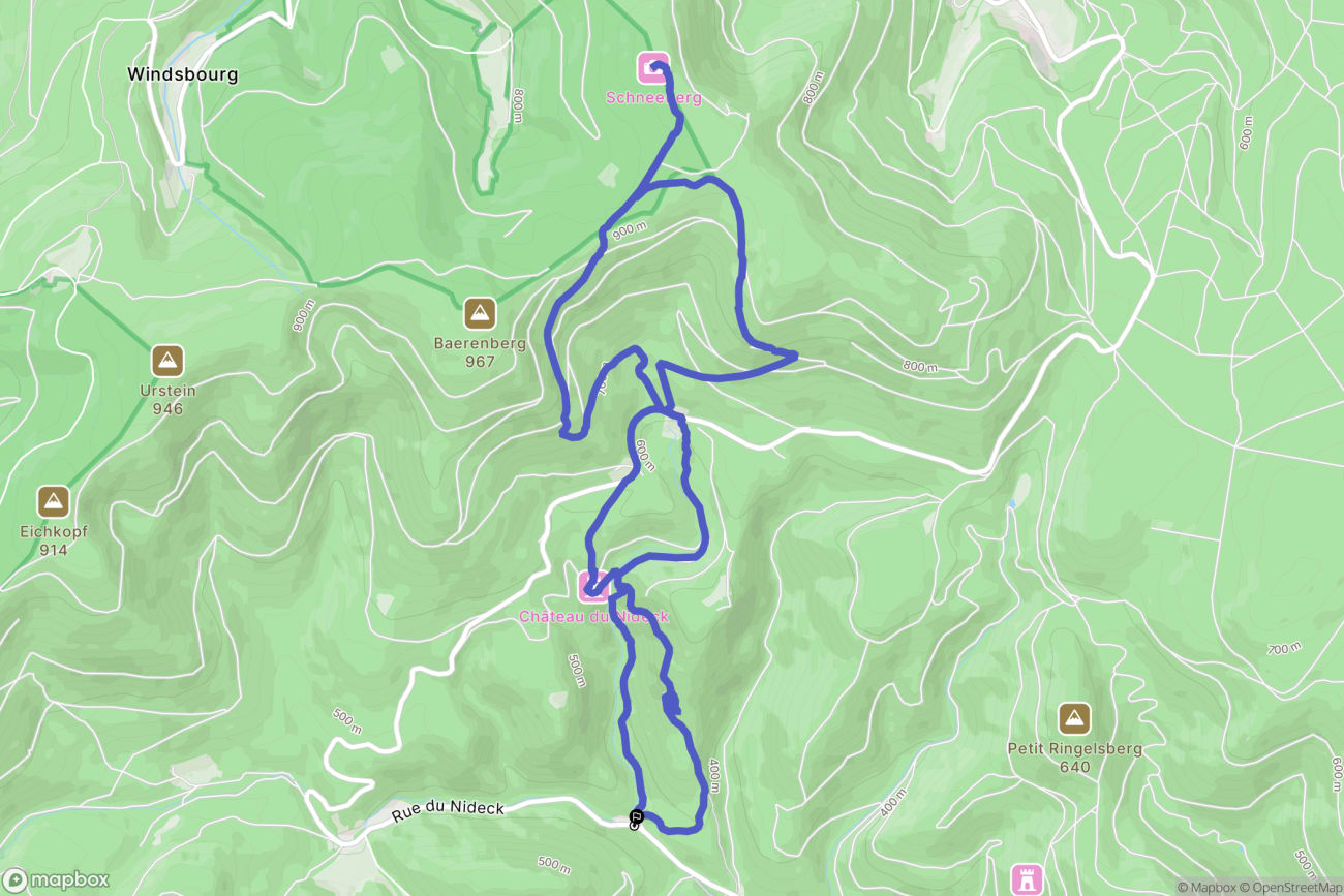 - Point de départ : Maison Forestière du Nideck, Oberhaslach (67280)