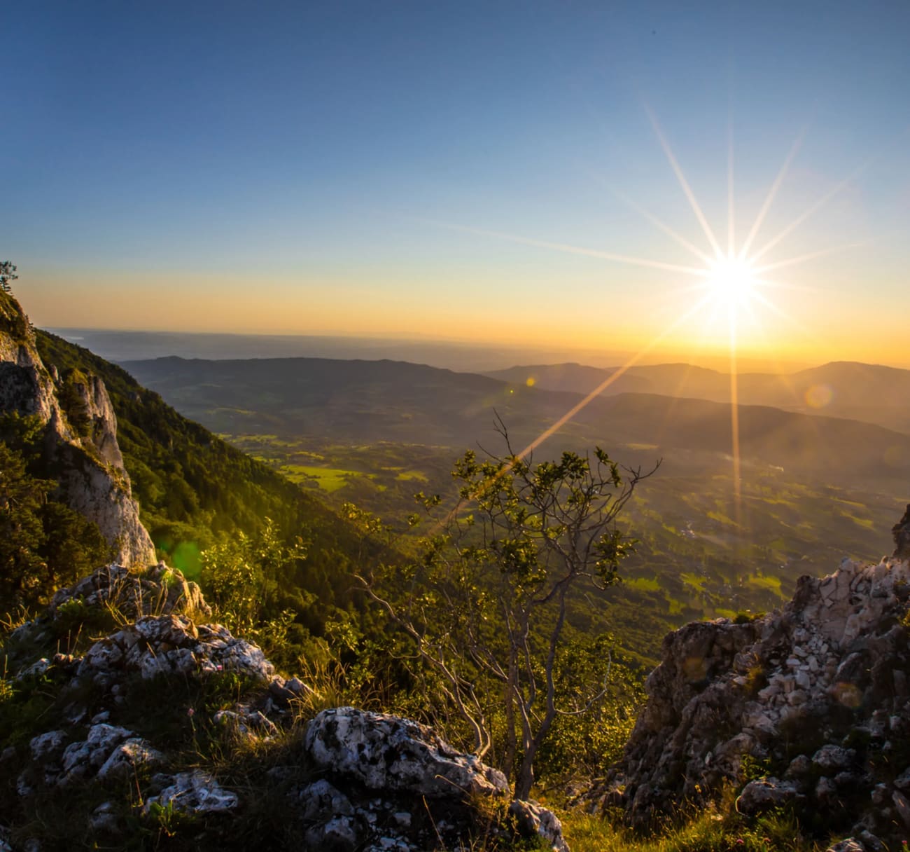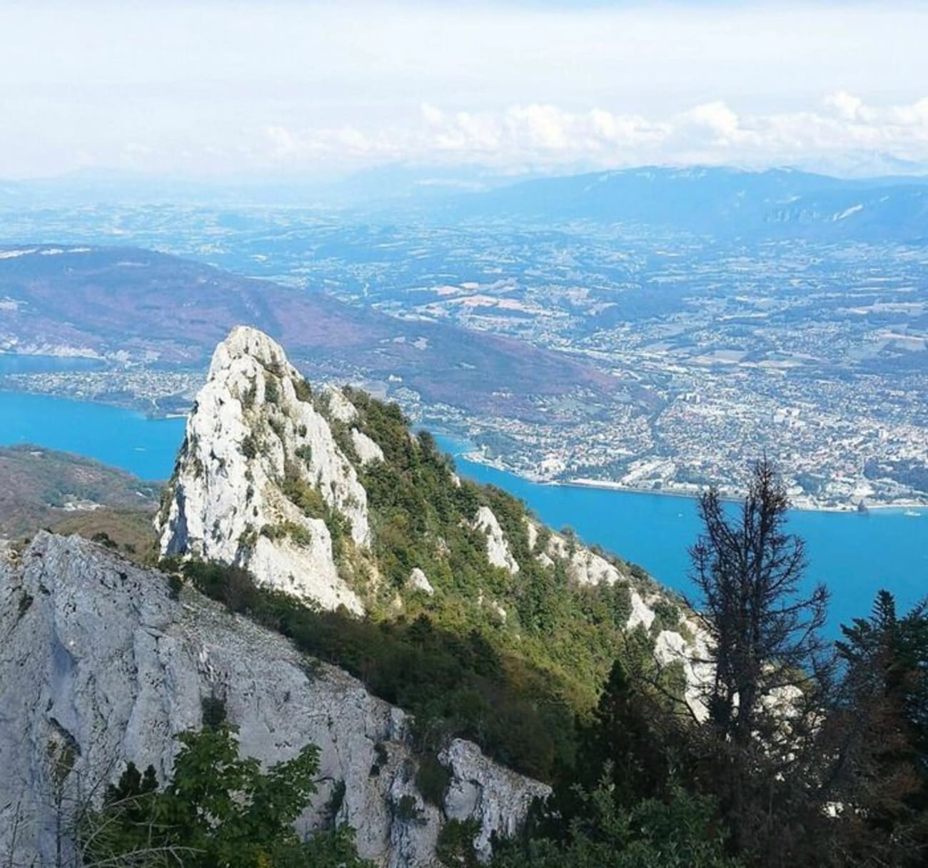 Après cette portion vertigineuse, vous atteignez le sommet de la dent du Chat, qui offre une vue à 360 degrés sur le lac du Bourget et le bassin chambérien, ainsi que sur les massifs des Bauges, de Belledonne, de la Chartreuse, de la Vanoise, et même sur le mont Blanc, si la météo est clémente.