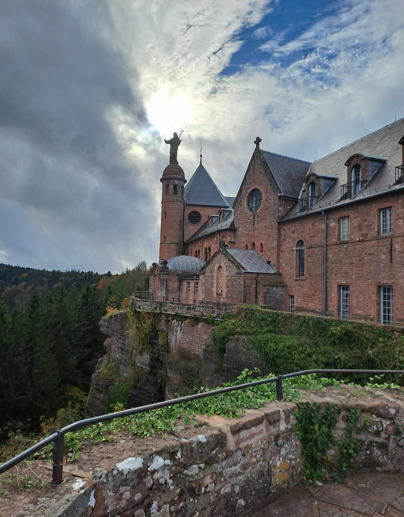 Fondée au VIIIe siècle par le duc Etichon-Adalric et sa fille sainte Odile et construite sur l'actuel mont Sainte-Odile, l'abbaye de Hohenbourg fut établie vers 662 à l'époque mérovingienne. Sainte Odile fut proclamée patronne de l'Alsace en 1946 par le pape Pie XII, faisant de ce lieu un sanctuaire emblématique pour tous les Alsaciens. L'ensemble monastique en grès rose, avec ses chapelles, cloîtres et terrasses, constitue un patrimoine architectural exceptionnel chargé d'histoire et de spiritualité.