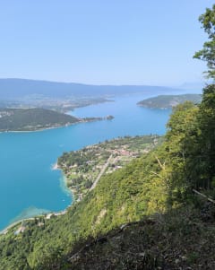 Une très chouette randonnée... Le début est effectivement très raide (457 mètres de dénivelé en 45 minutes), mais à l'ombre des bois, c'est agréable. Un petit conseil : au lieu-dit "Sous Rovagny", tourner à droite en direction de Rovagny, puis suivre le sentier menant au Belvédère du Bois des Hêtres, d'où vous aurez une vue magnifique sur une grande partie du lac. Le chemin est quasiment plat et sans aucune difficulté et vous y trouverez même des bancs pour un pique-nique à l'ombre.
