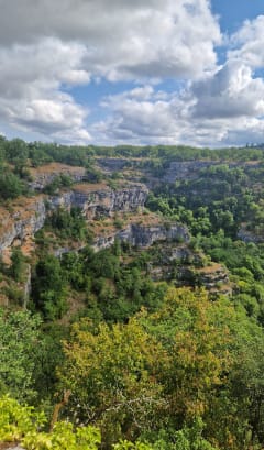 Maak een wandeling in de buurt van Rocamadour. De molen van Saut is voor iedereen toegankelijk en biedt een adembenemend uitzicht op het omliggende landschap en een prehistorische rotsschuilplaats in de kliffen van het plateau. Deze route voert u door de Alzou-kloof naar de molen van Saut, die in de 18e eeuw in de rotswand is gebouwd.