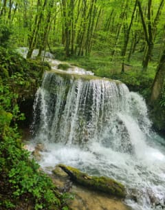 Pas de cascades car sécheresse. Il faisait 35 ° et le parcours est constitué de 2 km en montée et 3 km en plein cagnard.Seul petit plaisir: nous avons vu une biche! Le parcours doit être sympa au printemps ou en automne.