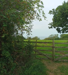 Vanaf de parkeerplaats van de kerk loopt u via een klein bospaadje naar de top van de Black Cow-kliffen, waar u een prachtig uitzicht op zee heeft. We vervolgen de route, soms over een klein weggetje, soms over een klein paadje, waar we prachtige huizen en een prachtig uitzicht over het landschap kunnen zien.