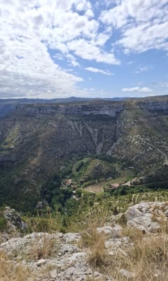 Splendide descente vers la Vis. En partant tôt (8h) ballade très largement ombragée. La dernière partie prévue sur la route de Blandas peut se faire sur le chemin balisé parallèle à la route. Il est bien balisé (jaune) et facile à suivre.