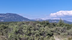 Belle sortie avec de jolies vues sur Le Pic Saint-Loup et L'Hortus, 2ème partie agréable en descente dans le bois. Prévoir de bonnes chaussures, chemin très caillouteux. Rando faite en 1h20.
