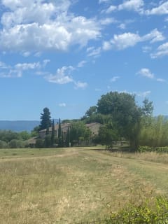 Départ de Lacoste un peu plus haut, traversée un peu le long d’une départementale puis à travers bois, en passant devant de jolies propriétés pour arriver avant Menerbes