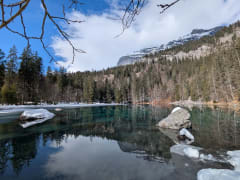 Superbe balade faite sans raquettes : un peu glissant a certains endroits a l'ombre, mais de magnifiques vues. Environ 5h avec plusieurs pauses dont une assez longue au lac vert.