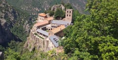 Onder een beuken- en sparrenbos dat in de zomer koelte garandeert, ontdekt u dit 11e-eeuwse klooster met uitzicht op indrukwekkende kloven. De steile omgeving doet denken aan de hangende kloosters van Meteora, Griekenland.