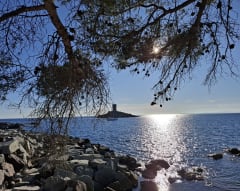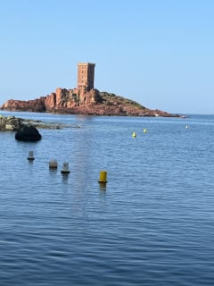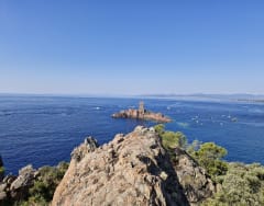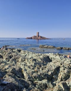 Tegenover Cap Dramont ziet u het beroemde Île d'Or, dat Hergé zou hebben geïnspireerd tot het schrijven van het Kuifje-album "De Zwarte Rotsen"!