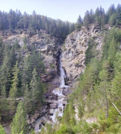 Een prachtige gezinswandeling vanuit het centrum van Pralognan. Een lus door het bos, met twee verschillende uitzichtpunten op de waterval. De wandeling werd gemaakt met twee kinderen van 4 en 6 jaar. Ontspanning gegarandeerd.