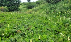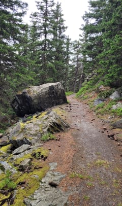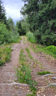 Het pad voert de wandelaar grotendeels onder het verfrissende bladerdak van het bos op zoek naar bosbessen. Het pad, onderbroken door coniferen en jeneverbessen, slingert zich door een paar bochten en onthult prachtige bergbloemen die lijken te luisteren naar de roep van de arend die vlakbij boven zijn prooi zweeft.