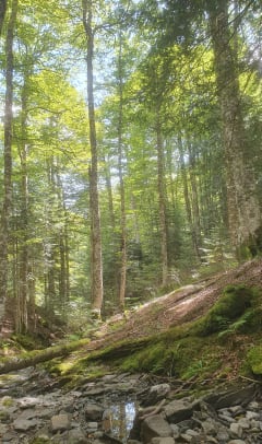 Douce randonnée, au frais à travers la forêt de hêtres. A faire en famille.