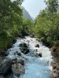 Op de grens tussen het kerngebied en het beschermde natuurgebied van het Nationaal Park Ecrins, volgt het pad een mooi geplaveid pad langs de Lauvitel-beek.