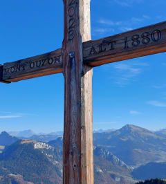 Deze wandeling, gelegen in het pre-alpine massief van Chablais, biedt een tocht naar de top van de Mont Ouzon, op een hoogte van 1880 meter. Deze tocht biedt een prachtig landschap, afwisseling en weinig verkeer. U ontdekt het oude skioord Drouzin-le-Mont bij de Col du Corbier, de geheime bossen en de bucolische bergweiden waar vroeger de koeien graasden die de Abondance-kaas maakten. U bereikt de Col de Plan Champ, langs het Chalet d'Ouzon, dat u steil beklimt, met behulp van een paar haarspeldbochten naar de Mont Ouzon. Het uitzicht is panoramisch en magnifiek: van het Meer van Genève tot de Mont Blanc, langs omliggende toppen zoals de Mont de Grange en de Cornettes de Bise.