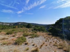 De route loopt langs de droge beek Rec, vanwaar u de ingang van de Crouzade-grot en de bijbehorende prehistorische vindplaats kunt zien. Ongelooflijk!