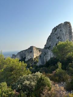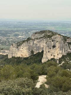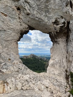 We lopen naar de Rocher des Deux Trous, geschilderd door Van Gogh tijdens zijn verblijf in Saint-Paul-de-Mausole. Hier genieten we van prachtige panorama's aan beide zijden van de Alpilles.