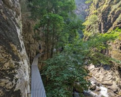 Het pad loopt over loopbruggen en richels in het hart van de kloven, wat werkelijk prachtig is! De natuur is levendig en het licht uniek; het laat een onvergetelijke herinnering achter die lang blijft hangen.