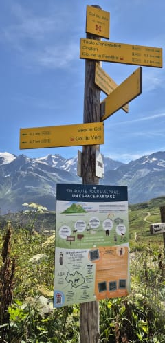 Neem vanaf Les Contamines Montjoie de Gorge-gondel naar L'Etape en vervolgens de Signal-gondel. Het eerste deel van de route is het moeilijkst vanwege de steilere hoogteverschillen. Je kunt de route ook in omgekeerde richting lopen door richting Col du Joly te gaan en rechtsaf te slaan richting het restaurant van de Besoëns-alp, richting Colombaz (een klein houten bordje geeft de richting aan). Je kunt ook vanaf het restaurant teruglopen naar de L'Etape-gondel of zelfs naar de parkeerplaats.