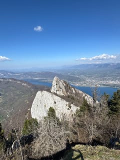 360° panoramisch uitzicht over het meer van Bourget. Ongeacht de toegang, ondanks de ladders aan het einde van het pad (niet erg geschikt voor kinderen). Toegang via de Molard Noir, die zeer gemakkelijk te beklimmen is.