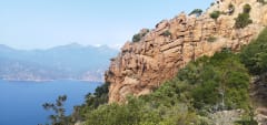 We beginnen bij een kleine parkeerplaats met ongeveer 10 parkeerplaatsen, met uitzicht op een rots in de vorm van een hondenkop. Dit is het startpunt. Het begin van de wandeling loopt door een klein, redelijk schaduwrijk bos met een paar holle rotsen. De rest van de wandeling bestaat uit verschillende klimmetjes en afdalingen door de Calanques de Piana. Er zijn minstens twee of drie plekken om te stoppen en foto's te maken van zowel de berg als de zee. Uiteindelijk komen we aan op een klein plateau met uitzicht op de Middellandse Zee en de calanques. Ideaal voor een wandeling met het hele gezin.