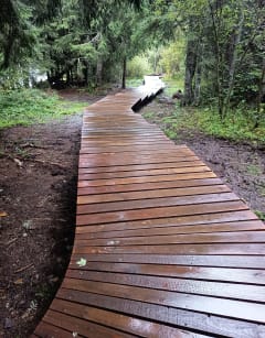 Belle petit ballade entre lac et forêt. Aucun problème avec chien et bébé dans porte bébé. attention, le parking de départ est privée et réservé aux client de l'auberge, il faut se garer plus loin au nord du lac. Certains passage non entretenu au sud du lac rendent la tracé impossible, il faut contourner par le bord de route qui est très large.