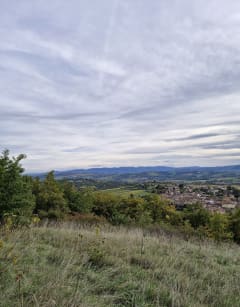 Belle randonnée au milieu des vignes, en sous bois. Un panorama exceptionnel sur le val d'oingt. Se fait facilement en moins de 2h. Quelques montées modérées sur de faibles distances.