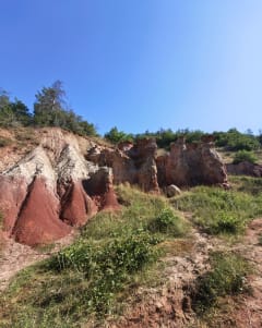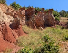 Aan de voet van de vulkanen van de Auvergne ontdekt u de Colorado! U hoeft er niet ver voor te rijden: parkeer gewoon in Boudes, wandel tussen wijngaarden, weilanden en bossen en dompel uzelf onder in de unieke sfeer van de gebeeldhouwde oranje rotsen met hun okerkleurige kleischoorstenen. De Colorado van de Auvergne is een unieke geologische site, ontstaan door erosie van wind en water. Tijdens de wandeling komt u ook de gasbron van Bard en het Gallo-Romeinse bassin tegen, voordat u via het gehucht Saint-Hérent terugkeert naar het dorp.