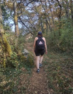 Au point de départ de la randonnée, il ya un petit parking de 4 voitures à l'ombre ce qui n'est pas négligeable. La grotte est sympa et à flanc de montagne. Il n'y a pas beaucoup de point de vue, alors profitez lorsque vous en trouvez un. Au retour, vous allez vous retrouver dans les vignes. Durant 30 mn vous serez en plein soleil. Heureusement qu'il y a le gps decathlon car les panneaux ne sont pas nombreux et les directions sont pas toujours précises.
