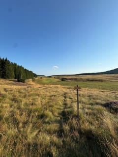 Volg het pad en de paden. Sommige klimmen, sommige door struikgewas, andere langs velden en heide. Hoogste punt: Puy Montchal. Neem de korte omweg naar het uitkijkpunt over het meer.