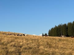 Partie sur le bitume (2km) pour le lac assèché sans grand intérêt. Traversée d’estive interdite aux chiens