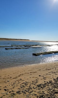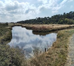 Volg het bos van Veillon om de Marais te bereiken. Ontdek de oesterbanken van de haven van Guittière aan uw linkerhand. (Let op de getijden!) U komt aan bij het strand van Veillon, dat u met uw voeten in het water kunt oversteken! Vervolg langs de rotsen (alleen bij eb, anders via het kustpad) om de baai van Anse de la République te bereiken. Keer terug naar het startpunt via het kleine weggetje.