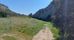 Très dépaysant en début de parcours avec une jolie vue sur les Alpilles, puis vers la fin avec les caisses de Saint Jean. En marchant un peu vite le parcours peut être réalisé en moins de 2h30.