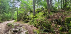 De route volgt voornamelijk brede, begaanbare bospaden voordat we de alpenweiden en het kleine meer van Mariet bereiken, langs goed gemarkeerde paden.