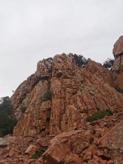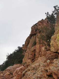 Deze route leidt vanaf de Col de Notre-Dame naar de Pic de l'Ours. We lopen tussen de jeneverbessen, in de rode en okerkleurige rotsen die zo kenmerkend zijn voor de Esterel.