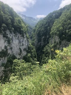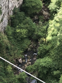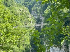 Vanaf daar kunt u de loopbrug bewonderen, die 150 meter boven de kloof hangt.