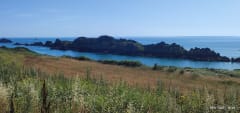 Parkeren bij Pointe du Grouin. Volg het pad. Bij Port Mer gaat u bergopwaarts, rechts aanhoudend (heel kort). Steek de hoofdweg over (oversteekplaats voor voetgangers), ga rechtdoor en volg de Rue du Cormoran (een rustige woonwijk) tot aan het pad in een veld dat rechts langs de heuvel loopt (goed gemarkeerd). Geniet van uw wandeling.