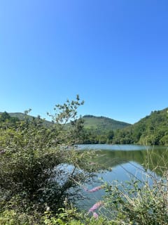 Balade sympathique. Arrivée au lac en 30 minutes, du coup je suis sortie des tracés de l’appli et ai fait le tour du lac. Pas beaucoup de visibilité sur le lac avant le barrage mais sympathique quand même. Quelques vaches croisées sur le chemin !