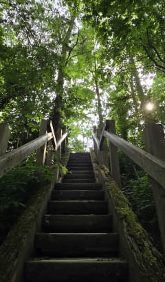 Balade paisible avec les chants des oiseaux. Calme avec des passages ombragés et bancs si besoin de se reposer. Attention à la fin du parcours qui demande de descendre les escaliers, c'était inaccessible mais en longeant le chemin il sera possible de descendre par un petit chemin en pente.