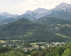 Vertrek vanuit het centrum van Barcelonnette. Gele markeringen. Nadat we de begraafplaats aan onze rechterkant hebben verlaten, slaan we linksaf om een pad te volgen dat langs een beek omhoog loopt. Links ziet u een vijver. Vervolgens buigt het pad naar links af om Barcelonnette te overzien, met verschillende uitzichtpunten over de stad en de bergtoppen. Het pad daalt vervolgens af het stadje in om terug te keren naar het beginpunt. Een ontspannen wandeling van ongeveer 2 km na de lunch in een restaurant.