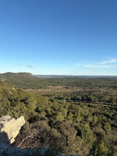 Balade parfaite en famille. Sol caillouteux mais plutôt régulier tout le long. Vue magnifique tout du long. Point de vue sur le Pic Saintloup et l'Hortus et sur l'arrière pays.