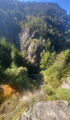 Très belle randonnée dans le Pilat. Le silence remplace le bruit du gouffre torrentiel. Site d’escalade et de via ferrata.
