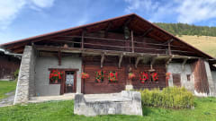 We wandelen door een dennenbos en vervolgens door het gehucht Planay, na een brug over een beek te zijn overgestoken.